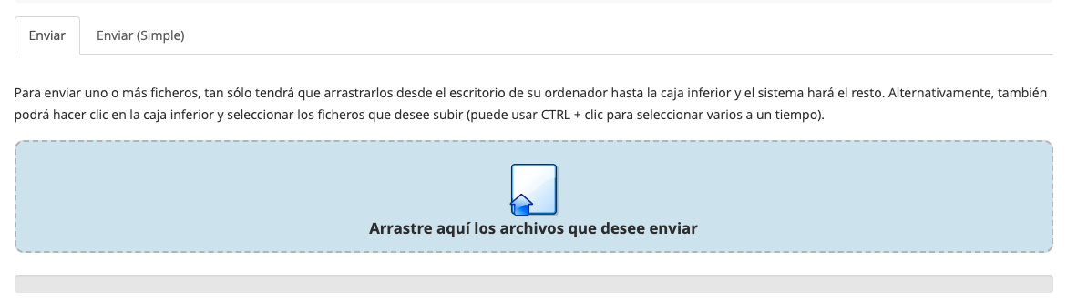6. Arrastre el archivo al espacio indicado o de clic sobre este para abrir la carpeta de documentos de su ordenador